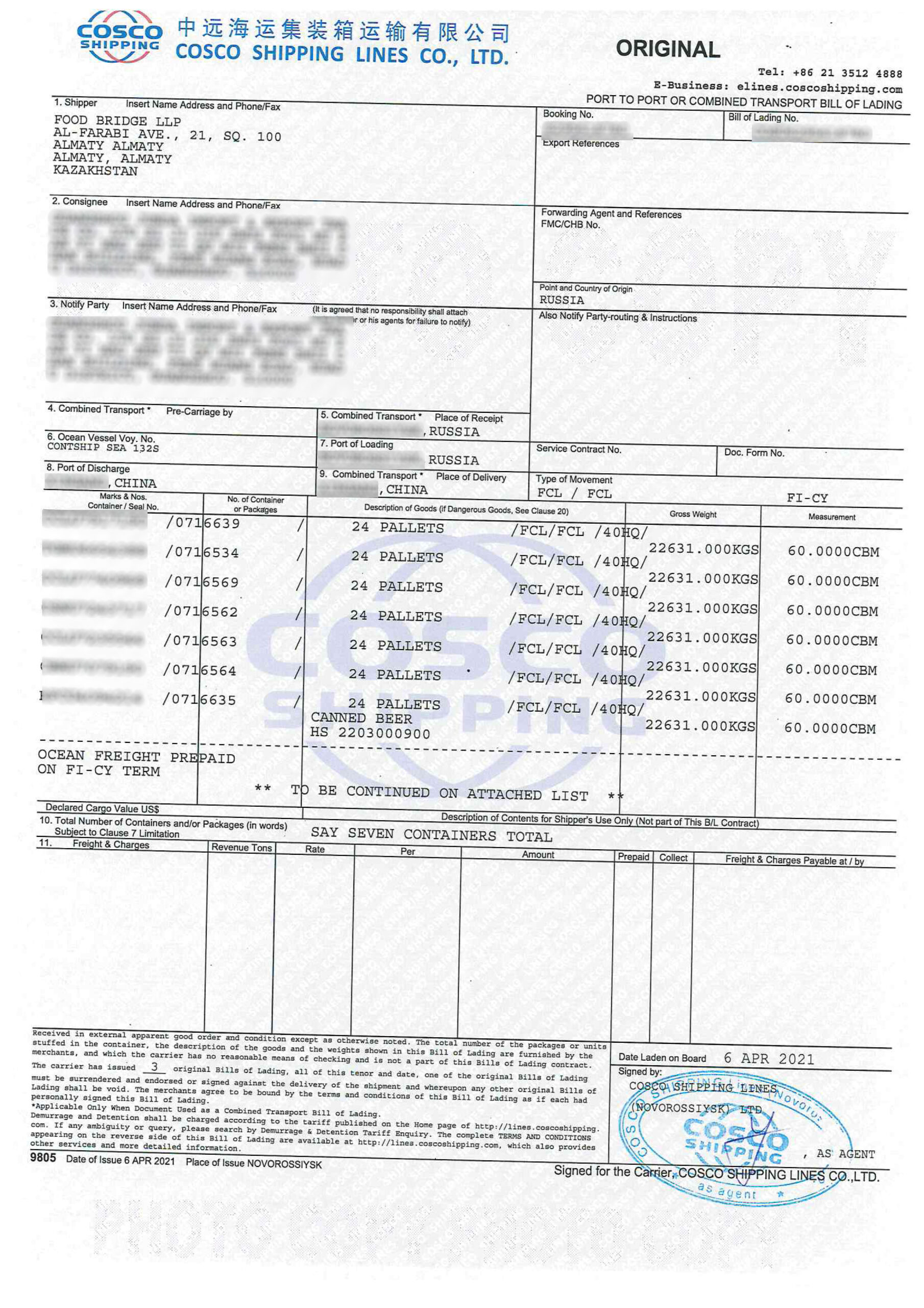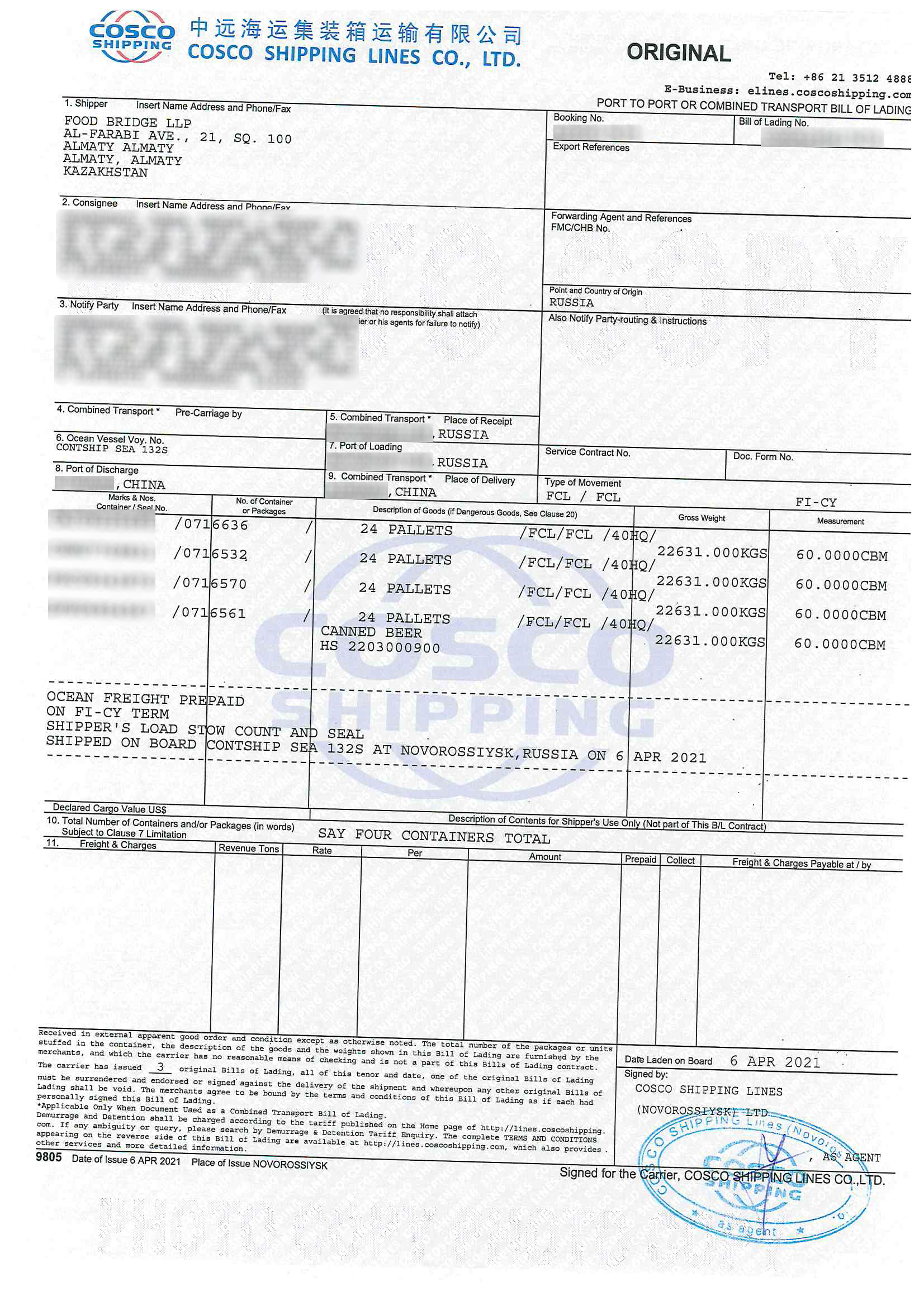 News Shipment on April 6, 2021. 07.11.2021 Posted by admini 06 Apr Shipment on April 6, 2021. 12 containers of beer were shipped to China.